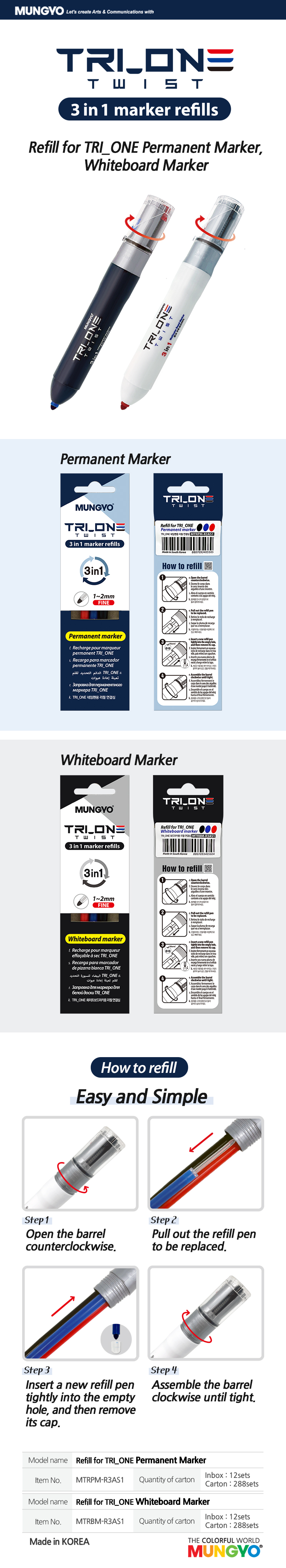 Tri One Marker Refills